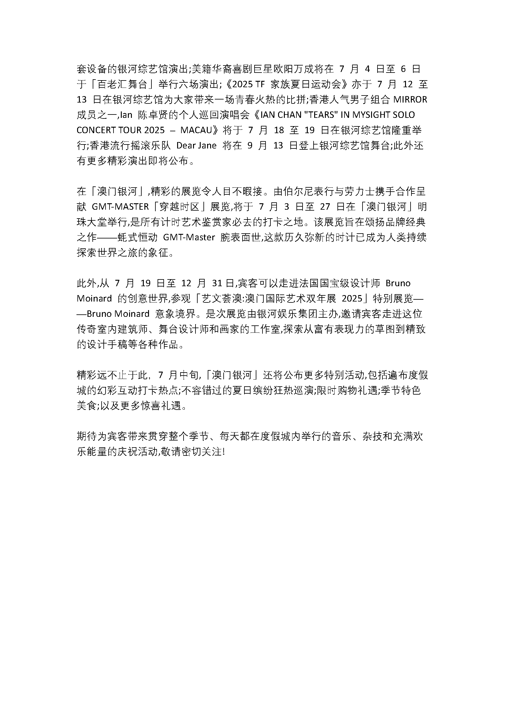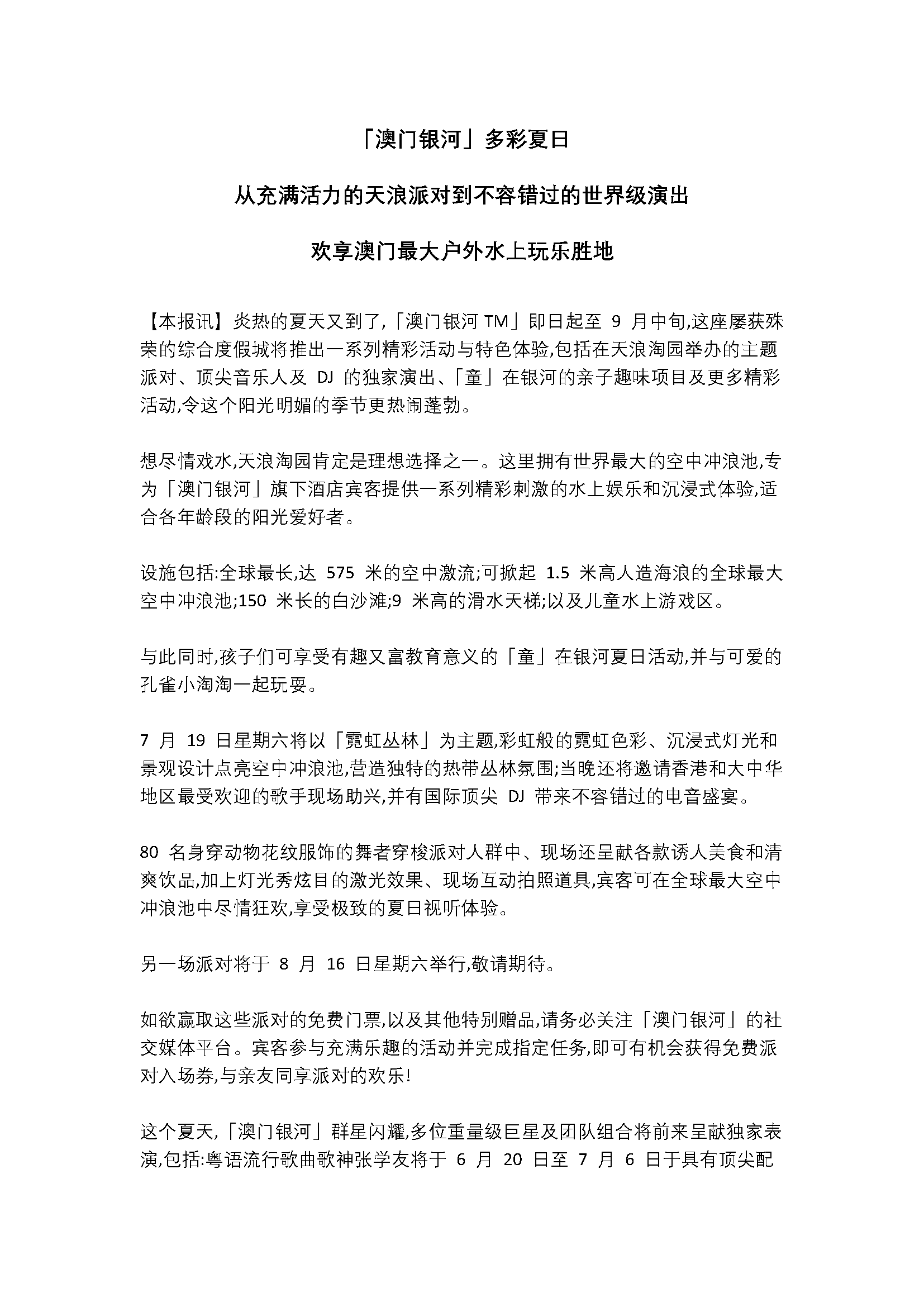 「澳门银河」多彩夏日 从充满活力的天浪派对到不容错过的Top级演出 欢享澳门顶流户外水上玩乐胜地