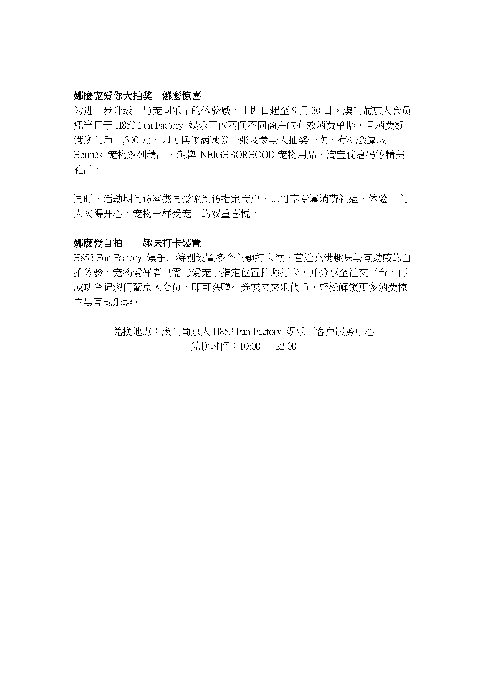 澳门葡京人H853 Fun Factory 娱乐厂展开宠物友善新篇章 联动IP「娜娜」开启夏日「娜麽宠爱你」主题活动